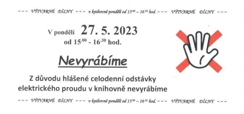 Z důvodu hlášené celodenní odstávky elektrického proudu v knihovně nevyrábíme